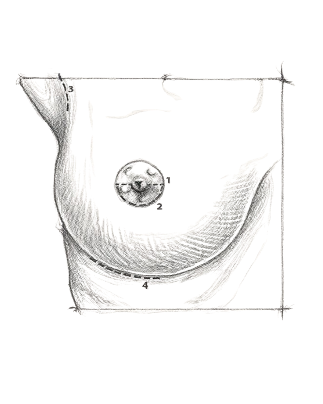 Dans certain cas lorsque l’hypertrophie mammaire et la ptose sont modérées, la cicatrice sous mammaire peut être supprimée, ne laissant qu’une cicatrice périaréolaire et verticale.